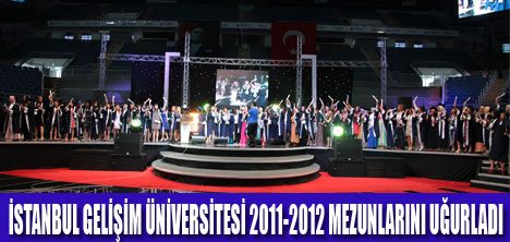 İSTANBUL- Ataköy Sinan Erdem Spor Salonu'nda gerçekleşen törene öğrencilerden birine yapılan evlilik teklifi damgasını vurdu.İstanbul Gelişim Üniversitesi 2011-2012 Eğitim-Öğretim döneminde mezun ettiği 1205 öğrencisini muhteşem bir törenle uğurladı. Ataköy Sinan Erdem Kapalı Spor Salonu'nda gerçekleşen törende konuşma yapan Mütevelli Heyet Başkanı Abdülkadir Gayretli, Biz gençlerle yola çıktık. Umutlarımızı hep gençlere bağladık. Çünkü gelecek ancak gençlerle mümkün. Gelişimde gençlerle mümkün dedi.