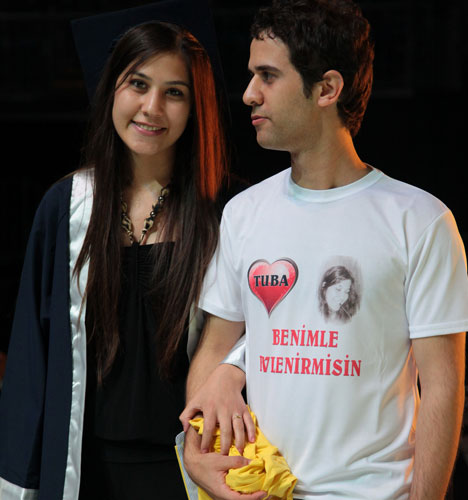 Törenin en ilginç anlarından biri ise Çocuk Gelişimi Bölümü Mezunu Tuğba Yağcı'ya yapılan evlilik teklifi oldu. Tören sırasında sahneye çıkarak mikrofonu alan sevgilisi Emrah Caran tarafından evlilik teklifi yapılan Tuğba Yağcı ilk anda neye uğradığını şaşırdı. İzleyenlerin şaşkın bakışları arasında, anne ve babasının izniyle evlilik teklifini kabul ettiğini söyleyen Yağcı'ya yüzüğü yine sevgilisi tarafından sahnede takıldı.