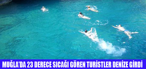 Hava sıcaklığının 23 dereceyi bulduğu Fethiye'de turistler denize girdi.