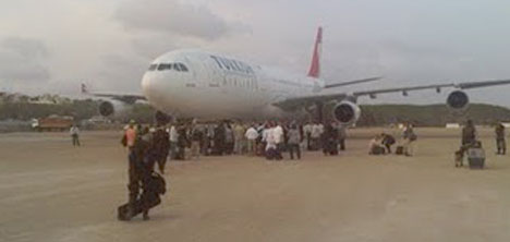 Uçağımız Aden'e yakıt ikmali için indi. Yaklaşık bir saat sonra, güneş doğarken, Mogadişu için havalandık. Mogadişu havaalanı deniz kenarında ve pist denize paralel.