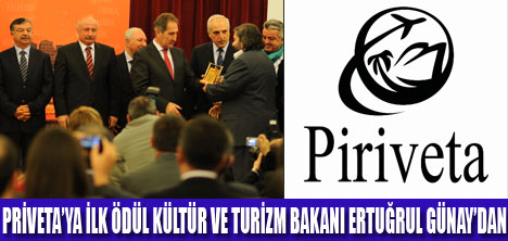 Piriveta.com Genel Müdürü Okan Barlas ödülü Piriveta adına Kültür ve Turizm Bakanı Ertuğrul Günay'ın elinden aldı. Kurulmasının ardından kısa süre geçmesine rağmen turizm sektörüne ve yerli turiste sağladığı avantajlarla dikkat çeken Türkiye'nin üyelere özel ilk indirimli turizm fırsatları kulübü Piriveta.com, ödül sahibi oldu! Her yıl geleneksel hale gelen EMITT Gala Gecesi'ne ana sponsor olarak katkıda bulunan Piriveta.com adına ilk ödülü Piriveta.com Genel Müdürü Okan Barlas, Kültür ve Turizm Bakanı Ertuğrul Günay'ın elinden aldı.