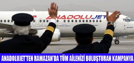 AnadoluJet, bu kaçırılmayacak kampanyası ile iftarlarda çoluk çocuk tüm aileleri memleketlerinde buluşturacak.Ramazan ayında, tüm vatandaşlar, 25 Ağustos-15 Eylül 2009 tarihleri arasında uçmak istenilen tarihten 9 gün öncesine kadar herşey dahil 59 TL'den biletlerini alabilecekler. Kampanya, AnadoluJet'in Türkiye'nin 26 noktasına gerçekleştirdiği tüm uçuşlarda geçerli olacak.