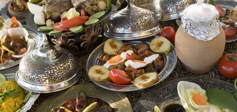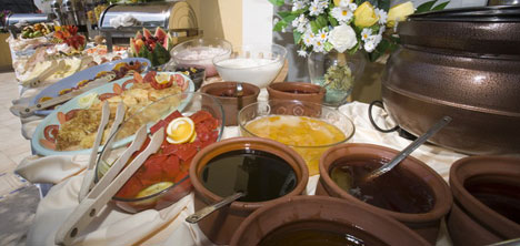 ( Yaprak Sarma, Patlıcan Salatası,Sucuk, Pastırma, Hurma, Beyaz Peynir, Bal, Reçel, Siyah Zeytin, Yeşil Zeytin, Salatalık, Domates, Kuru Kayısı, Kuru İncir )