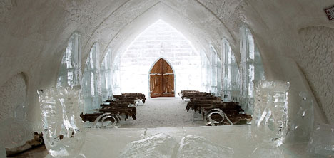Genelde 5000 ton işlenmiş buz ve 15 bin ton kardan yapılan buz otelde Nice Club adlı bir sanat galerisi Ice Cafe, ve düğünler için küçük bir kilise yer alıyor