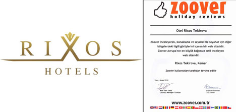 2010 sezonu içerisinde Rixos Otel Tekirova'da konaklayan Avrupa'lı misafirler, tatil sonunda internet üzerinden www.zoover.com adresine yaptıkları yorumlarla en iyi otel olarak seçilip, tavsiye ederken, sitede Rixos Otel Tekirova ''Zoover Holiday Reviews'' ödülüne de layık görüldü.