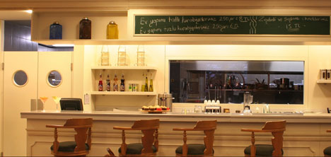 Konuklarını girişte şık tasarımlı bir şapkanın karşıladığı, kırık beyaz ile toprak rengi tonların hakim olduğu 58 kişilik oturma kapasitesine sahip mekan, berjer, koltuk, gruplar için tasarlanan geniş masa, bar ve bahçe bölümlerinden oluşuyor. Şapkalı Kadın'ın hünerlerinin sergilendiği Akdeniz'in her iki yakasındaki ülke mutfaklarından izler taşıyan mönüsünde hafif, sağlıklı ve lezzetli seçenekler sunuluyor.