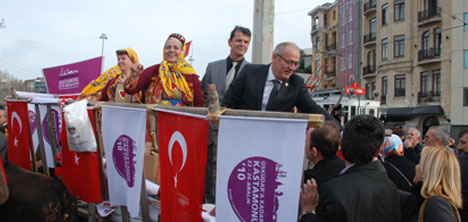 Kastamonu gelenek ve göreneklerini tanıtmak için düzenlenen etkinlikte, Kastamonu'dan 2 öküz ve kağnı arabası getirildi.