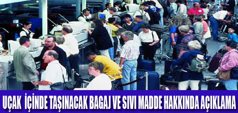 Bilindiği üzere, havayolu ile seyahat edecek yolcuların, seyahatleri esnasında uçak içinde yanlarında bulunduracakları el/kabin bagajlarında taşıyabilecekleri sıvılarla ilgili sıvı kısıtlaması düzenlemesi, halen dış hat uçuşlarında uygulanmakta olup, 1 Mart 2012 tarihi itibariyle İstanbul Atatürk ve Sabiha Gökçen, 1 Nisan 2012 tarihi itibarıyla da tüm iç hat uçuşlarında da uygulanacaktır.
