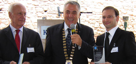 Bu ay doğum günü olan SKAL üyelerini anons eden Özyiğit, daha sonra yemeğe ev sahipliği yapan Kalyon Otel'in sahibi Yılmaz Tecimen'i sahneye davet ederek SKAL'a verdiği emekler nedeniyle SKAL'ın kuruluşunun 75. yılı anısına bir plaket sundu.
