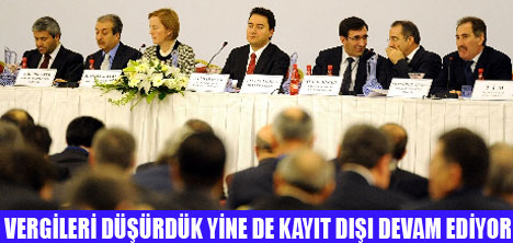 Devlet Bakanı ve Başbakan Yardımcısı Ali Babacan, vergi oranlarındaki düşüşlerin kayıt dışılığı azaltmadığını belirterek, oranları düşürmede bir sınıra geldiklerini, bundan sonra mevcut oranların "ciddi vurgulanması" için hazırlık yaptıklarını belirtti. Denizli Anemon Oteli'nde düzenlenen 39. Ekonomi Koordinasyon Kurulu toplantısının açılış konuşmasını yapan Babacan, Türkiye'nin terör sorununu çözüm yoluna sokan bir ülke olmasının yatırımlar açısından cazibesini artıracağını, risk priminin aşağıya çekilmesinin ülkeyi çok farklı bir noktaya getireceğini ifade etti.2008 ve 2009 yıllarında dünya ekonomisinin görünümüyle ilgili değerlendirmelerde bulunan Babacan, dünyada yaşanan finansal krizin bir ekonomik krize, ardından da pek çok ülkede bir siyasi krize neden olduğunu, pek çok köklü şirketin tasfiye olduğunu, sadece ABD'de 183 bankanın battığını, krizin açık ekonomiye sahip tüm ülkeleri etkilediğini ve 2. Dünya Savaşı'ndan bu yana ilk defa küresel ekonominin daraldığını dile getirdi.