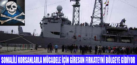 Somalili korsanlara müdahale için Aden Körfezi'ne asker sevki ile ilgili yetki tezkeresi uyarınca, Deniz Kuvvetleri Komutanlığı'na bağlı Giresun firkateyni Aden Körfezine gitmek üzere yarın Aksaz Deniz Üs Komutanlığı'ndan hareket ediyor.