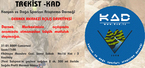 31-1-2009 Trekist-KAD dernek merkezi açılışı 17:00 Cumartesi akşamı uzun uğraşlar sonucu, arkadaşlarımızın katkıları ve emekleri sonucu, doğa severlerin hizmetine sunacağımız dernek merkezinin açılışına bütün doğa severler davetlidir.