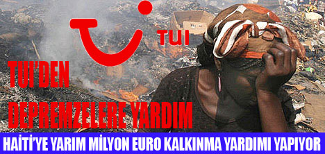 TUI Grubu, Haiti'deki felakete seyirci kalmayacak. Avrupa'nın Pazar lideri tur operatörü TUI, depremde terle bir olan Haiti'ye yarım milyon dolarlık kalkınma yardımı yapıyor