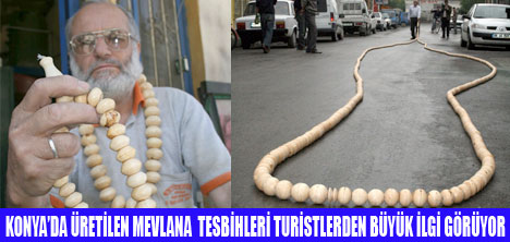 Konya'da da Mevlana Müzesi'ne gelen yabancı turistler, müze çevresindeki dükkanlardan Mevlana tespihi almadan kentten ayrılmıyor."