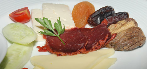 Hurma, Humus, Pastırma, Kaşar peyniri, beyaz peynir,