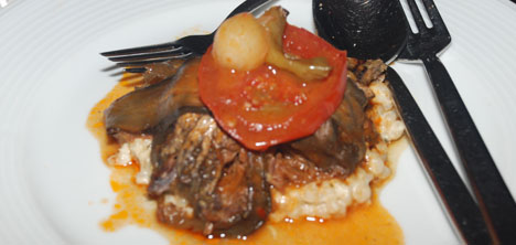 Patlıcana sarılı Kuzu Kızartması Fesleğenli Buğday ile enfes bir sofra düzeni hazırlanmıştı