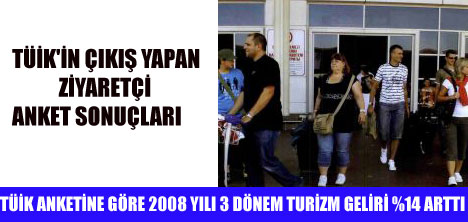 2008 yılı Üçüncü Dönem Turizm Geliri, geçen yılın aynı döneminden yüzde 14,4'lük artışlı 9. 9 milyar dolara ulaştı.