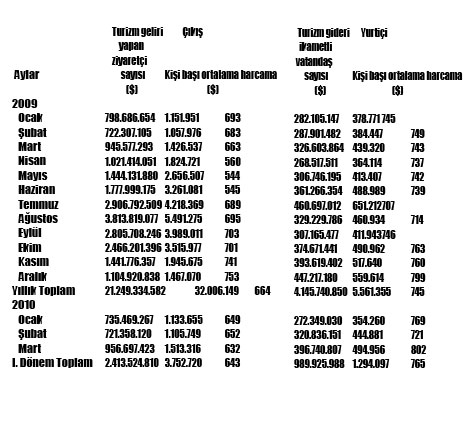Aylık turizm geliri ve gideri, 2009-2010