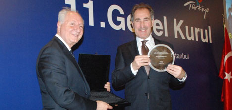 Konuşmanın ardından TYD Yönetim Kurulu Başkanı Turgut Gür, Bakan Günay ile Türkiye Seyahat Acentaları Birliği Başkanı Başaran Ulusoy, Türkiye Otelciler Federasyonu Başkanı Ahmet Barut, Turistik Otelciler, İşletmeciler ve Yatırımcılar Birliği Başkanı Timur Bayındır, TYD kurucu üyelerinden Yılmaz Işıkçı ve Türkiye Çevre Eğitim Vakfı Başkanı Rıza Epikmen adına Ergüder Tırnova'ya, turizme katkılarından dolayı plaket verildi. Bakan Günay da Gür'e, Türkiye'nin turistik ve kültürel yerlerini tanıtan bir kitap hediye etti.
