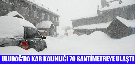 Uludağ Meteoroloji İstasyonu yetkililerinden alınan bilgiye göre, "oteller bölgesi"nde son yağışlarla birlikte kar kalınlığı, 70 santimetreyi buldu. Hava sıcaklığının eksi 9 derece olarak ölçüldüğü Uludağ'da tipi şeklinde yağan kar yüzünden görüş mesafesinin 150 metreye kadar düştüğü bildirildi.