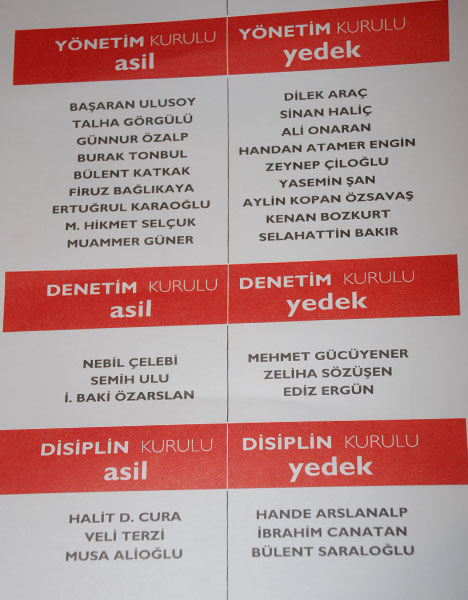 Sandıkların kapanıp sayım işleminin tamamlanmasının ardından Divan Kurulu Başkanı Talha Çamaş'ın ilçe seçim kurumunca yapılan oy sayımlarının kabul edilmesi üzerine yönetim kurulu listesini ve yer alan isimlerin aldıkları oy oranlarını açıkladı.