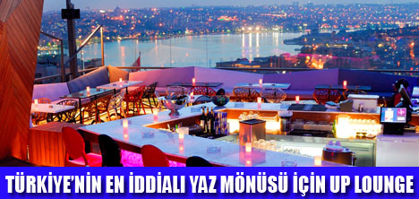 MarGroup'un yeni mekânı Up Lounge sadece manzarası ile değil modern dekorasyonu, uluslararası ve yerel tatların harmanlanmasıyla oluşturulmuş geniş yemek mönüsüyle de Asmalımescit'e farklı bir soluk getiriyor.Özenli servisi, görkemli manzarası ve kaliteli eğlence anlayışı ile kısa sürede adından söz ettiren Up Lounge'ın bu yaza damgasını vuracak iddialı mönüsü Amerika'da aşçılık tecrübesi olan Şef Pelin Görpe tarafından hazırlanıyor.