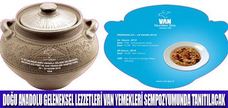 Van Valiliği'nin organizasyonunda yapılacak olan 2. Uluslar arası Doğu Anadolu Bölgesi Geleneksel Mutfak Kültürleri ve Van Yemekleri Sempozyumu'na, Van Belediyesi, İstanbul Üniversitesi, Yüzüncü Yıl Üniversitesi (YYÜ) Van Ticaret ve Sanayi Odası, Anadolu Geleneksel Mutfak Kültürünü Koruma ve Yaşatma Derneği, TMMOB Mimarlar Odası Van Şubesi, Yemek ve Kültür Dergisi, Van Vakfı, Van Ticaret Borsası, Van Lokantacılar Odası, Van Otelciler Birliği ve Van Kahveciler Derneği de katkı sunuyor. 24 Kasım 2010 günü saat:09:00'da Van Ticaret ve Sanayi Odası'nda başlayacak olan sempozyumun ilk günü Prof. Dr. Oktay Belli, YYÜ Rektörü Prof. Dr. Hasan Ceylan, VATSO Başkanı Zahir Kandaşoğlu ve Van Valisi Münir Karaloğlu birer konuşma yapacak.