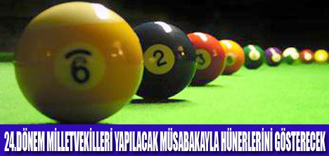 Bu yıl 5.si düzenlenen Meclis Oyunları Müsabakaları kapsamında bu kez de milletvekilleri bilardo oynayacaklar. En çok tercih edilen Bilardo branşı, 'Karom' yani '3 Top' ve Pool diğer adıyla Amerikan bilardosu oynayacak milletvekilleri ilk olarak kısa bir disiplinlerinde eğitim alacaklar. Eğitim süresi sonunda vekillerimizin beceri düzeyleri göz önünde bulundurularak müsabakalar yapılacak. '3 Top' disiplininde 11 sayı üzerinden 2 galibiyet seti üzerinden gerçekleştirilecek faaliyet eğer 'Pool' disiplini tercih edilirse 8 top branşında 5 galibiyet seti üzerinden gerçekleştirilecek.