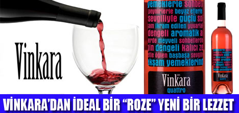 Kalecik Karası ve Hamburg Misketi üzümlerinden üretilen bu ideal roze, kırmızı meyve aromaları ve tropikal meyve, gül, misket limonu kokuları ile eğlenceli, serinletici ve çok farklı bir tat sunuyor. Vinkara'nın ideal sofra şarapları olarak öne çıkan Quattro Kırmızı ve Beyaz serisi, yeni şarabı Quattro Roze ile meyveli ve zengin aromatik özelliklere sahip yepyeni bir lezzet sunuyor.