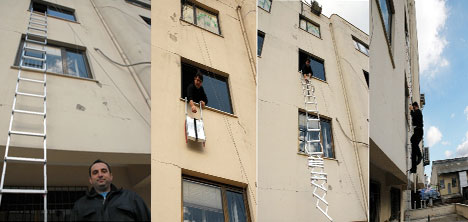 Bakırcı, "Tak&İn" adı verilen merdivenin pençe sistemi sayesinde pencere kenarlarına veya balkon korkuluklarına takılabildiğini belirterek, şunları anlattı: "İniş sırasında 0-3 yaş arasındaki çocukların indirilmesi için de merdivenin çantası kullanılabiliyor.